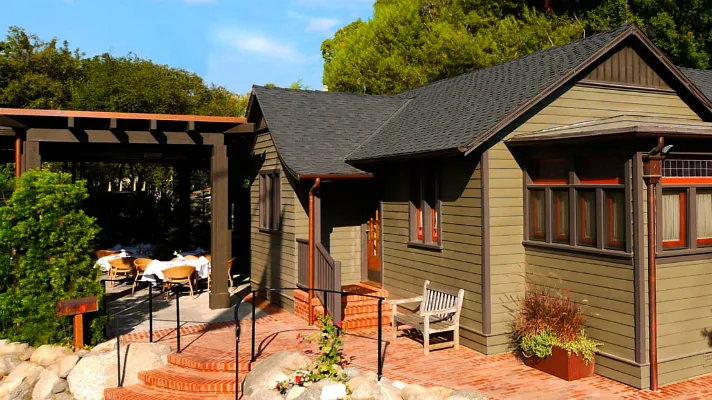 The Raymond Hotel is long gone. Fortunately, the caretaker’s cottage survived. Today it’s an uber charming restaurant and bar that takes its name from the historic property. And it feels worlds away from the hubbub of Old Pasadena. A row of tall, feathery evergreens shelters the spacious patio, a civilized spot to indulge in well executed Cal-Med fare. And because the owners are dog people, dogs are most welcome. Friday lunch and weekend breakfasts are the most popular for the dog set. Benedicts, which come in several iterations—we’re partial to the smoked salmon—hit the spot. Lunch features a tasty fork-and-knife Caesar (a la the original whole-leaf Tijuana preparation) served with hanks of warm grilled sourdough.